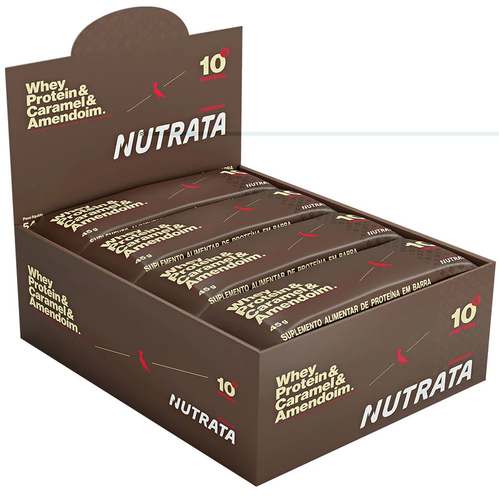 A tabela a seguir apresenta dados nutricionais aproximados para a barra de proteína Nutrata Reserva (Caramel Protein 45g), com base em informações de varejistas online: