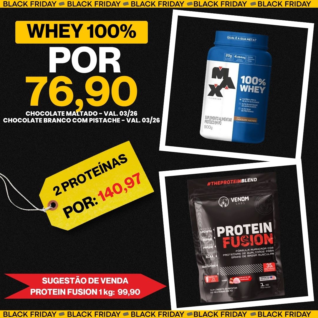 Black Friday ~ Whey Protein Fusion 1kg refil Venom Labs + 100% whey 900g pote Max Titanium