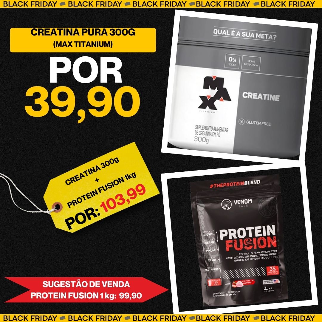 Black Friday Whey Protein Fusion 1kg refil Venom Labs + Creatina 300g 100% pura Max Titanium