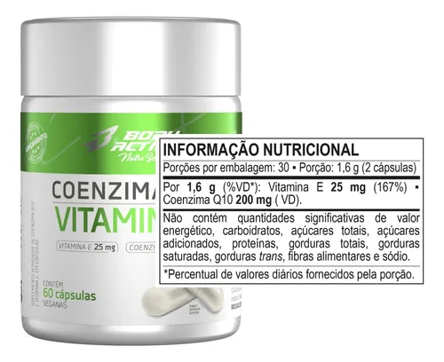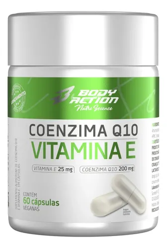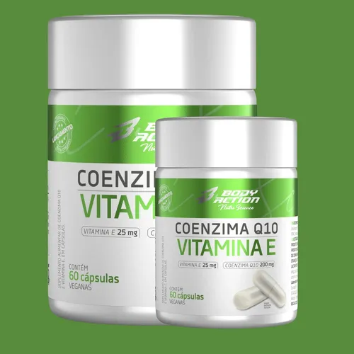 Coenzima Q10 com Vitamina E – Body Action | Antioxidante Celular de Alta Potência A Coenzima Q10 com Vitamina E da Body Action é um suplemento alimentar desenvolvido para promover a proteção celular contra os radicais livres, melhorar a produção de energia celular (ATP) e contribuir para o bom funcionamento cardiovascular e imunológico. A combinação sinérgica da CoQ10 com a Vitamina E potencializa a ação antioxidante, combatendo o estresse oxidativo e o envelhecimento precoce. BENEFICIOS DA COENZIMA Q10 DA BODY ACTION