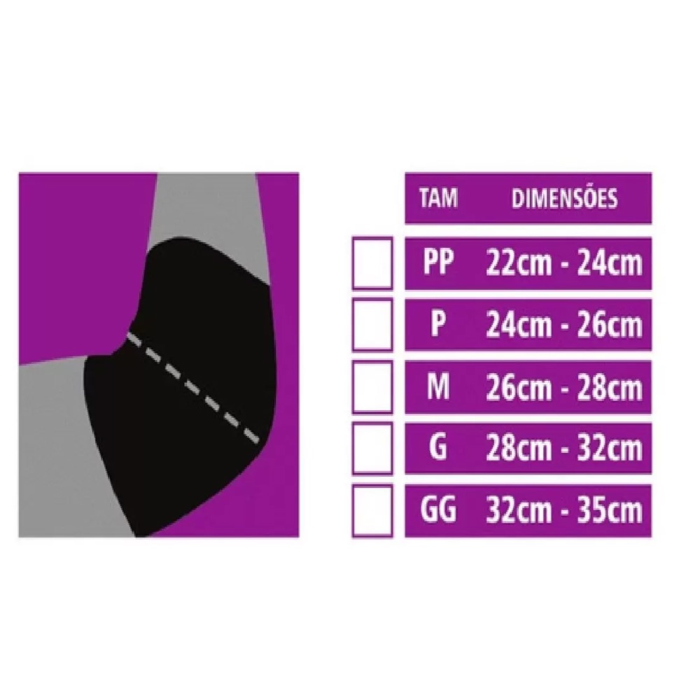 Cotoveleira Compressão Tennis Elbow Longo Hidrolight – Preto Oferece compressão em torno da articulação do cotovelo; Melhora a sensação de estabilidade; Reforço através da faixa com fecho aderente; Ajuste conforme a sua necessidade; Retém o calor devido ao material; Auxilia no alívio da dor. Tamanhos M 26cm – 28cm | G 28cm – 32cm | GG 32cm – 35cm Indicações Prevenção de lesões durante a prática de exercícios; Tratamento de lesões agudas ou crônicas; Tendinite, epicondilite, epitrocleite; L.E.R. (lesão por esforço repetitivo); D.O.R.T. (distúrbios osteomusculares relacionados ao trabalho); Processos inflamatórios; Auxílio no tratamento fisioterapêutico. CONSULTE UM ESPECIALISTA. Instruções de Uso Puxe o produto até o cotovelo de forma que permita a movimentação. Ajuste a faixa para aumentar a compressão conforme necessidade. Composição Borracha de cloropreno revestida com tecido 100% poliamida. Nome: Cotoveleira Compressão Tennis Elbow Longo Hidrolight Gênero: Unissex Indicado para: Joelho Marca: Hidrolight
