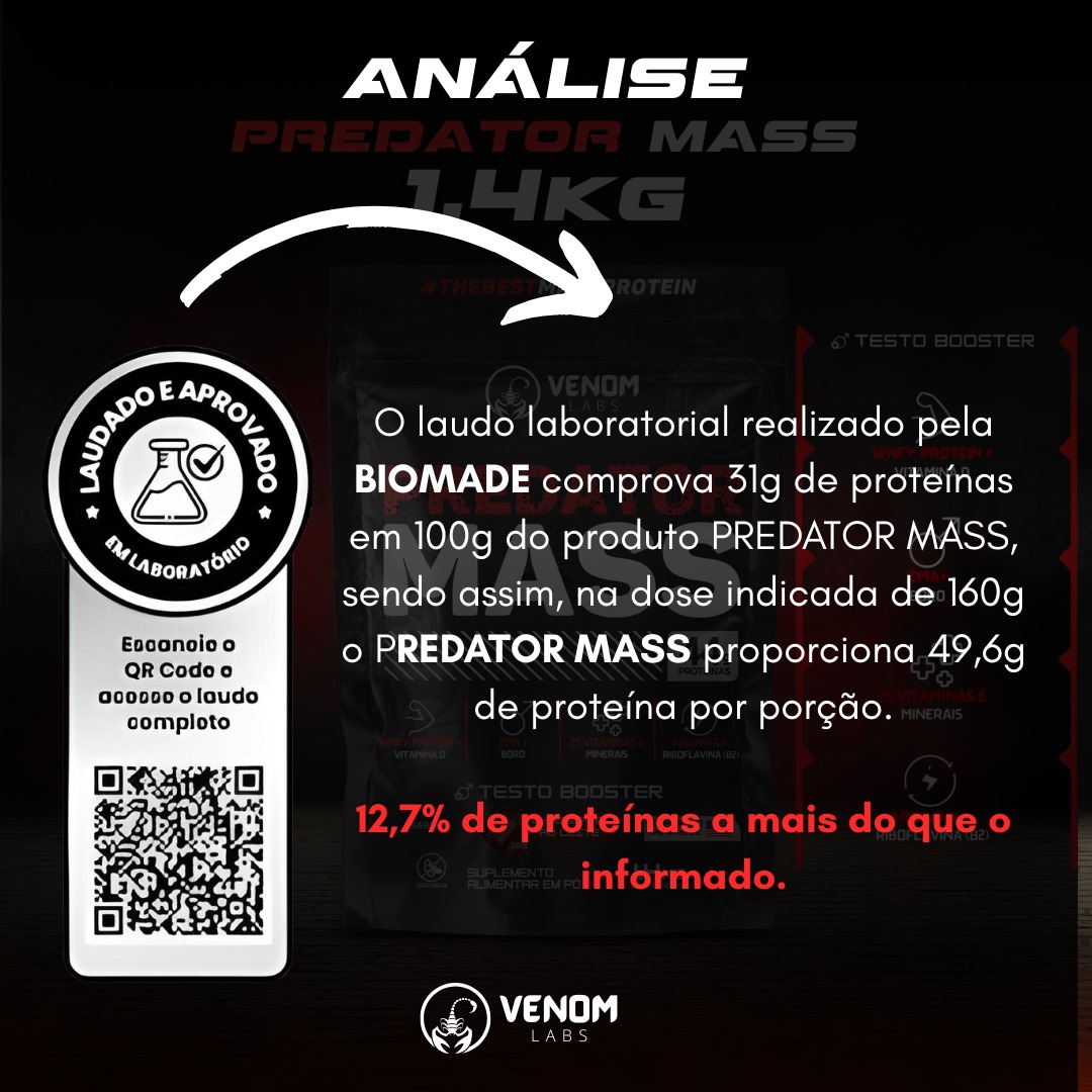 O Predator Mass 1,4kg é a escolha definitiva para quem quer ir além, conquistar resultados rápidos e duradouros, e conquistar uma nova versão de si mesmo. Venom Labs – superando seus limites!