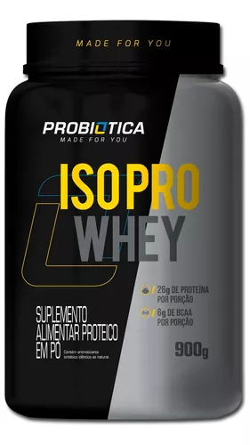 O Iso Pro Whey 900g – Probiótica é rico em proteínas isoladas, tendo alto teor de aminoácidos de cadeia ramificada, e auxiliando no ganho de massa muscular.