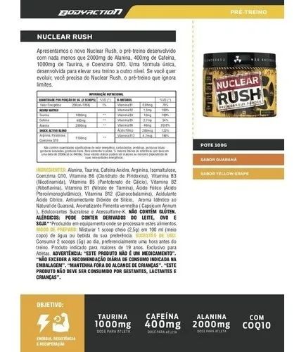 Nuclear Rush 100G Pré Treino Com 2000Mg Beta Alanina – Body Action