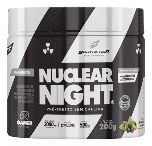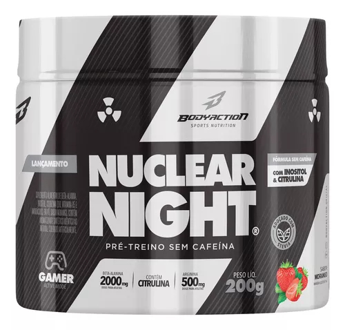 Pré Treino Noturno Sem Cafeína Nuclear Night 200g Bodyaction Sabor Morango’ é um suplemento dietético que complementa a alimentação e ajuda a obter as vitaminas, minerais, proteínas e outros componentes indispensáveis para o correto funcionamento do organismo.