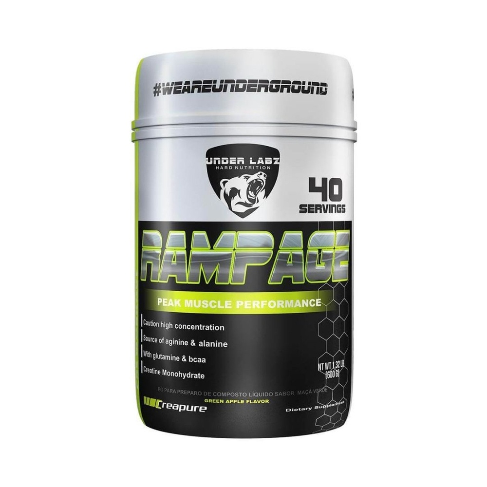 O pré-treino mais completo do mercado! Em pouco tempo, considerado por muitos o melhor pré-treino do mercado e com uma gama de 40 doses, o RAMPAGE possui em sua fórmula um perfil completo de aminoácidos.O Rampage foi formulado com um único objetivo em mente. Para criar o pré-treino absolutamente mais eficaz, completo e mais puro que existe no momento. Podemos dizer sem dúvida que esse objetivo foi alcançado, tornando o Rampage o pré-treino mais poderoso do mercado hoje. O Rampage é construído com ingredientes dosados clinicamente e cientificamente comprovados para maximizar o desempenho do treino e produzir resultados. Atletas de todos os níveis percebem que, para alcançar a sessão de treinamento mais eficaz, energia, força, resistência e foco são obrigatórios. Um complemento pré-treino completo deve suportar todos esses benefícios. A combinação sinérgica de ingredientes encontrados no Rampage ajuda a preparar seu corpo fisiologicamente e psicologicamente, amplificando a energia, aprimorando a conexão mente-músculo e apoiando aumentos na força muscular, potência e resistência. De cima para baixo, o Rampage ajudará a manter o treinamento mais forte e por mais tempo.Benefícios e diferenciais:*3g de creatina monohidrata*3g de alanina*1g de arginina*1g de glutamina*1g de leucina*250mg de isoleucina*250mg de valina*4g de waxy maizeSugestão de uso:Misture 1 1/2 medidor (7,5g) em 200 ml de água ou bebida de sua preferência. Consumir uma porção duas vezes ao dia, sendo uma preferencialmente 10 minutos antes dos treinos ou conforme recomendação profissional.Apresentação:Pote com 600g que rendem 40 doses.Sabores:*GREEN APPLE*PEACH MANGOIngredientes:Waxy Maize, Creatina Monohidratada, Alanina, L-Arginina, L-Glutamina, Leucina, Cafeína Anidra, Valina, Isoleucina, Acidulante Ácido Cítrico, Aroma Idêntico ao natural de Limão e Edulcorante Sucralose. NÃO CONTÉM GLÚTEN.GARANTIA: Só comercializamos produtos 100% ORIGINAIS, Todos nossos produtos possuem Nota Fiscal de compra dos fornecedores e Importadores, Emitimos em todas nossas vendas Nota Fiscal ao Consumidor Final, 100% dentro da Legalidade! Nossos Produtos possuem Garantia contra defeito de fabricação, contém lacre de segurança, Lote e Validade.*NÃO CONTÉM GLÚTEN.*Este produto não deve ser consumido por gestantes, lactantes e crianças.*Não exceder a recomendação diária de consumo indicada na embalagem.*ALÉRGICOS: PODE CONTER AMENDOIM E DERIVADOS DE SOJA, LEITE E OVO.*ESTE PRODUTO NÃO É UM MEDICAMENTO.*MANTENHA FORA DO ALCANCE DE CRIANÇAS.*VALIDADE – 04/2022*ANVISA: Produto dispensado de Registro de acordo com a RDC 240/2018.*MARCA: UNDERLABZ.