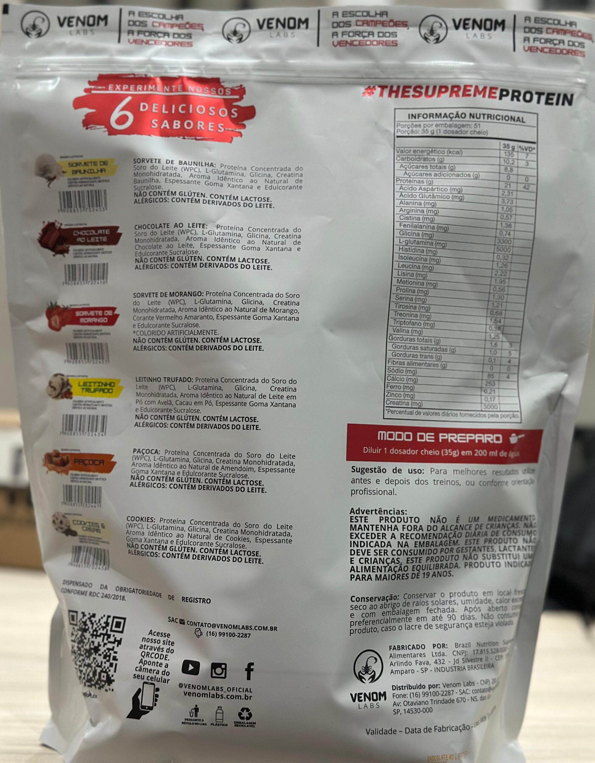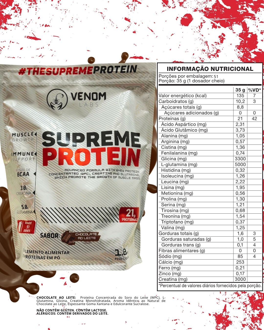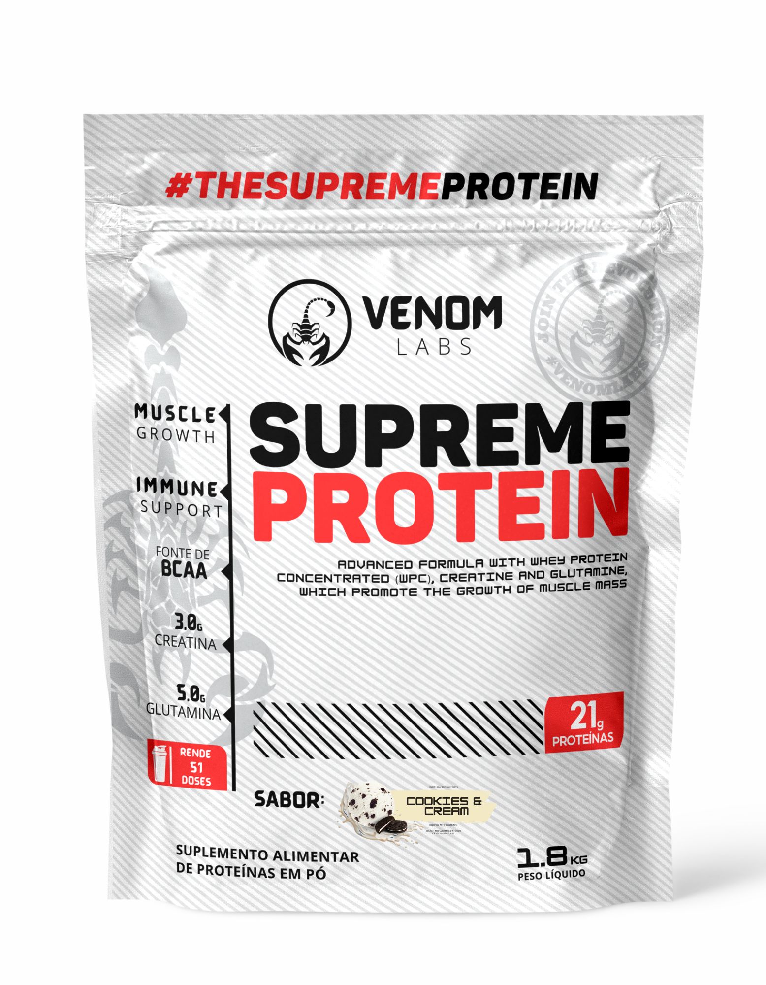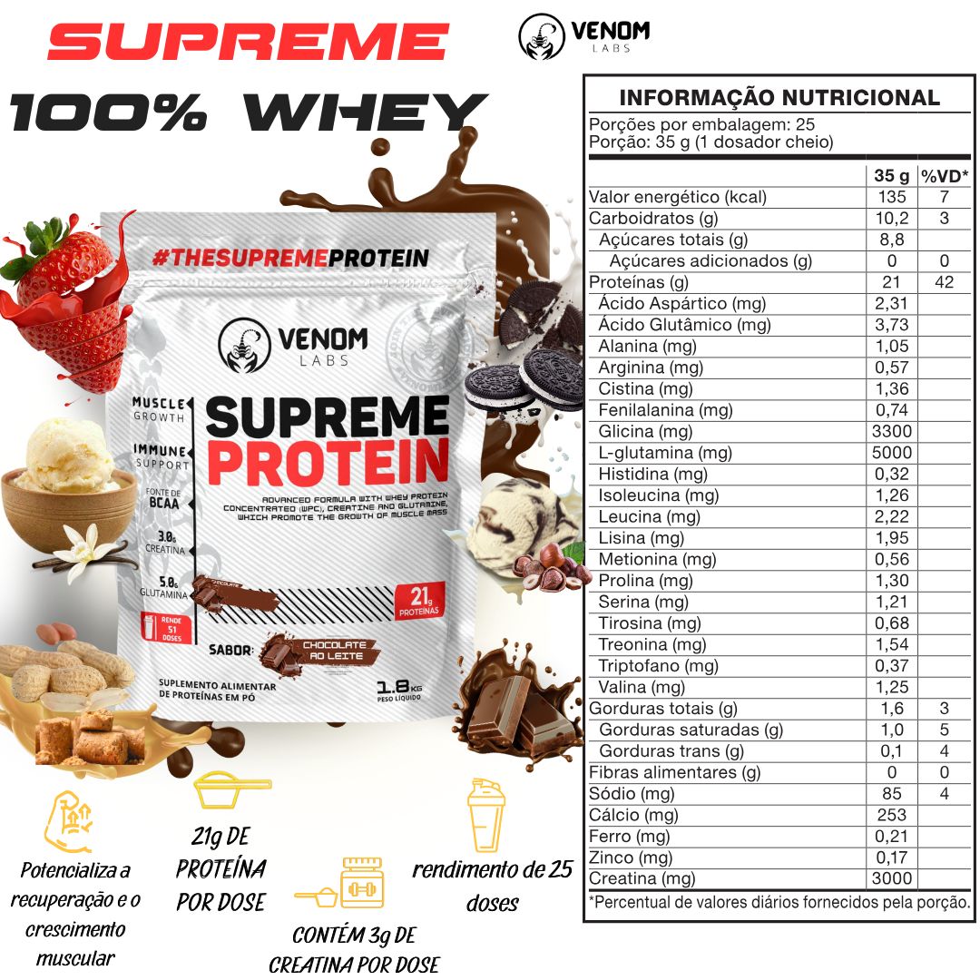 Supreme Whey 100% Concentrado Protein 1,8 Kg Refil (rendimento 51 doses & 3g creatina) Venom Labs + Brinde