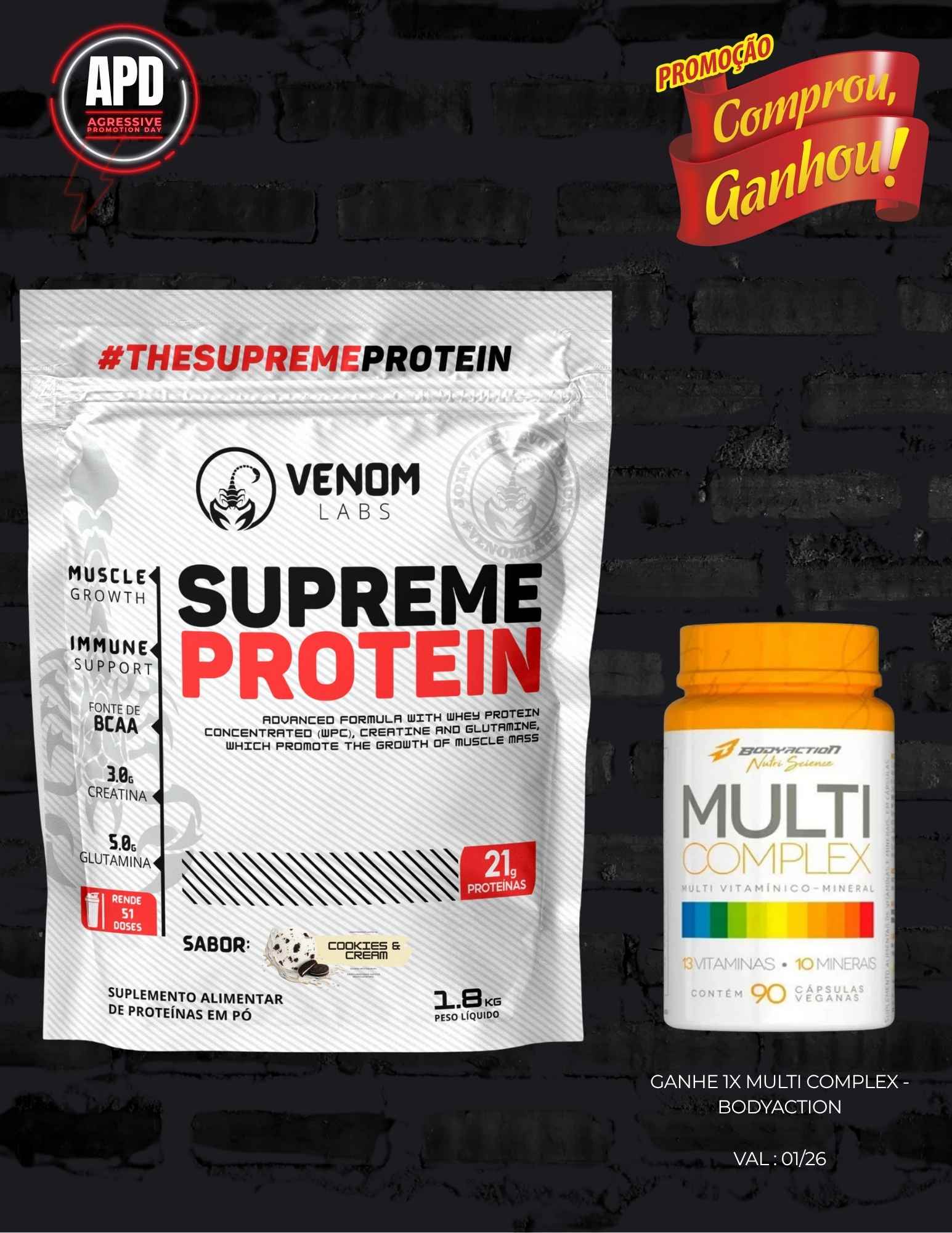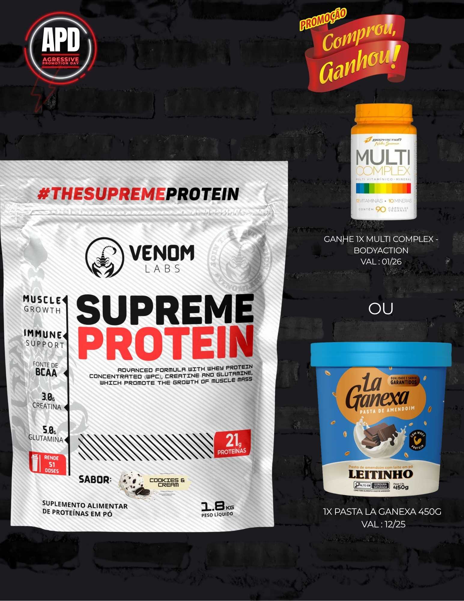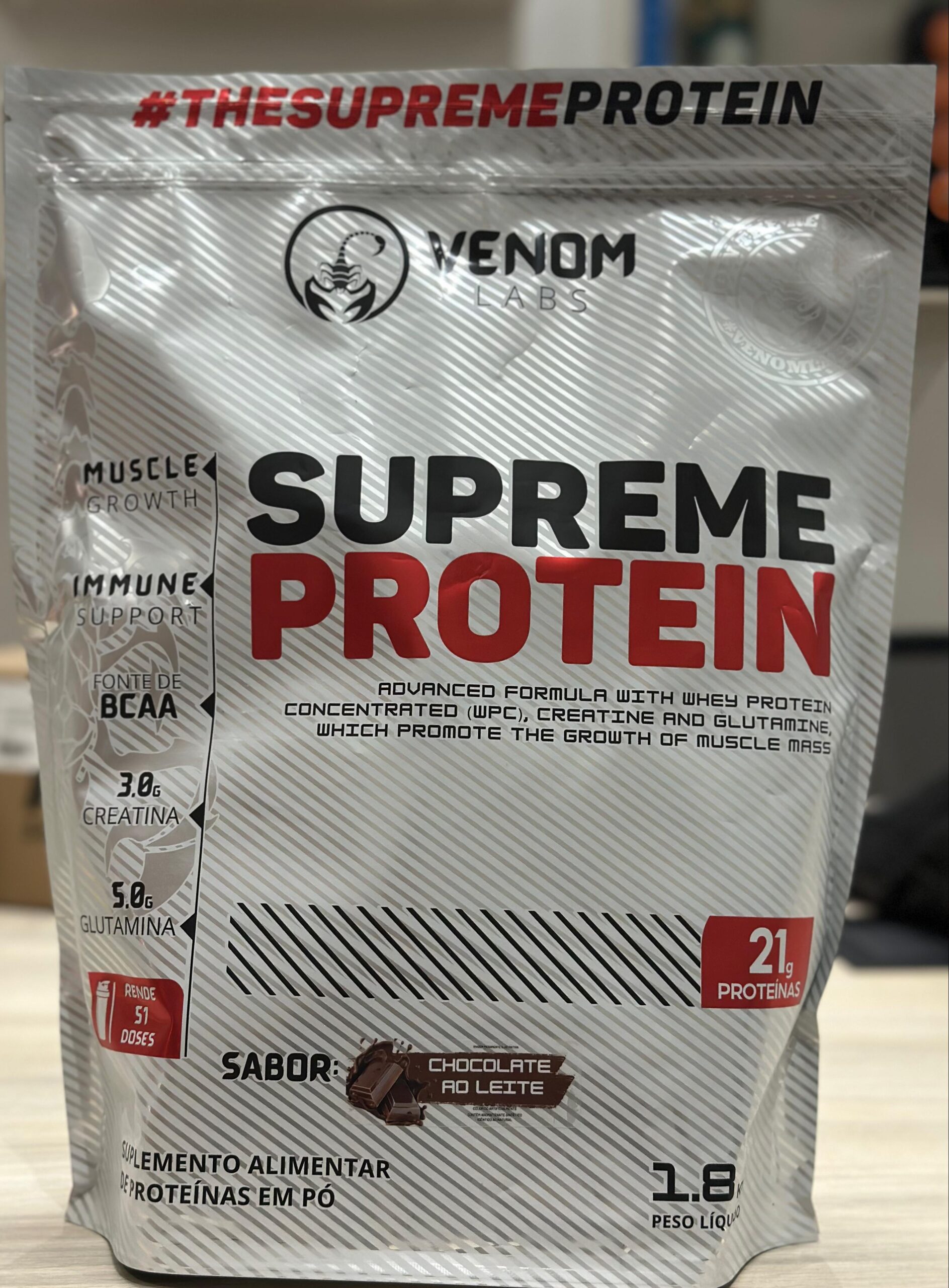 Supreme Whey 100% Concentrado Protein 1,8 Kg Refil (rendimento 51 doses & 3g creatina) Venom Labs + Brinde
