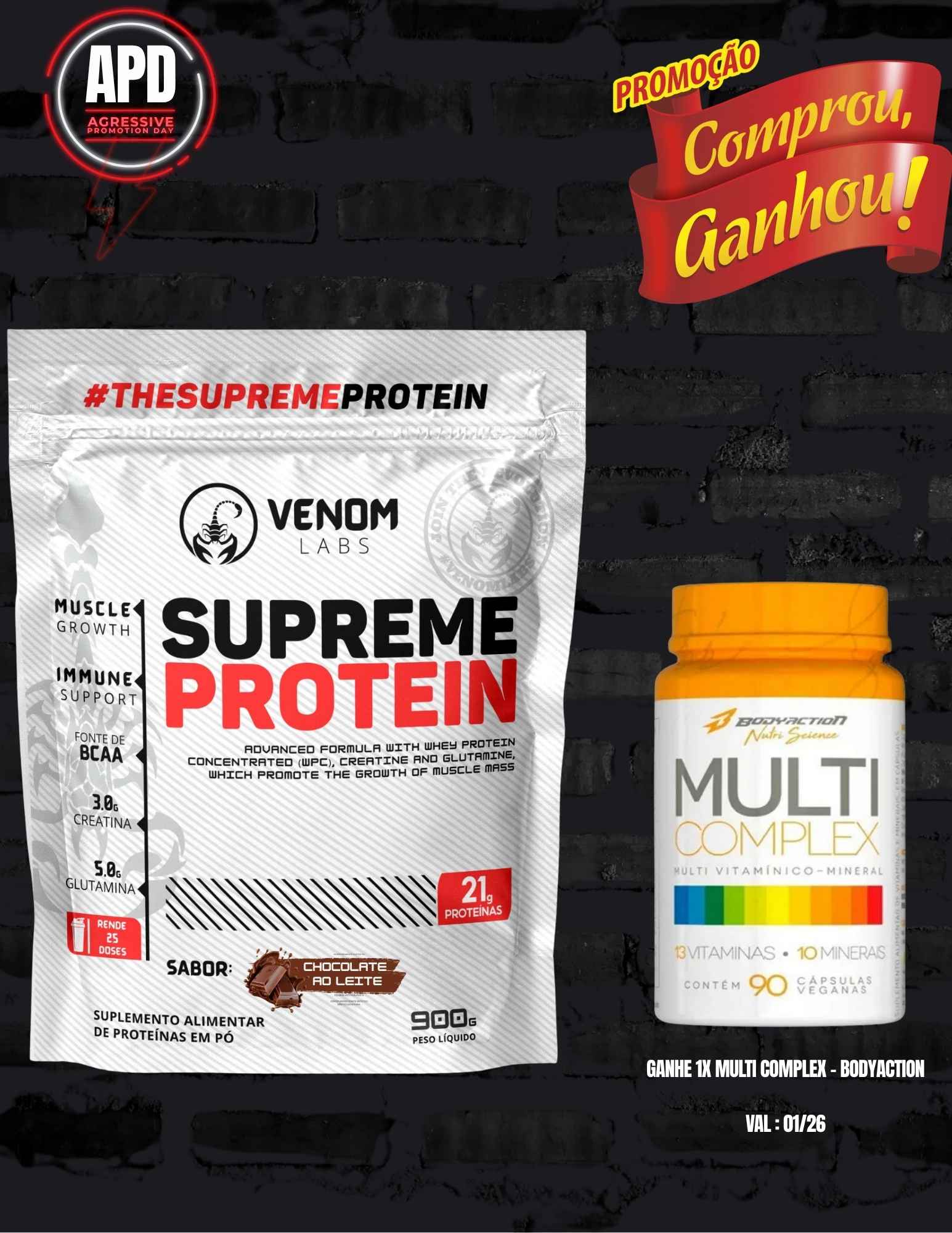 Supreme Whey 100% Concentrado Protein 900g Refil (rendimento 25 doses & 3g creatina) Venom Labs + *BRINDE*
