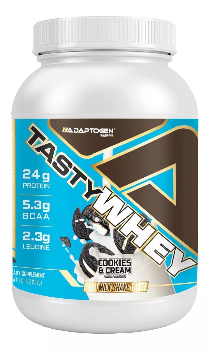 TASTY WHEY da ADAPTOGEN, é um whey protein com sabor imbatível, sabor esse, que já lhe rendeu alguns prêmios de proteína mais saborosa do mercado, além do seu sabor e qualidade incomparável, ela possui 24g por porção, alto valor biológico de excelente absorção, com baixo carboidratos. Ideal para ser tomado ou usando em sua receitas fitness.