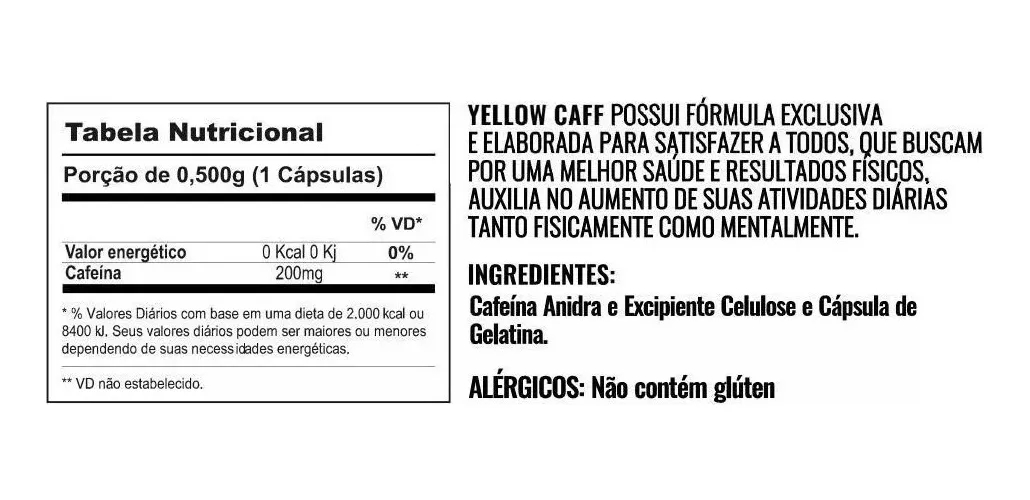Quando cada momento conta, Yellow Caff é seu aliado confiável para enfrentar os desafios com vigor. Experimente a clareza mental e a sensação de alerta que impulsionam sua jornada, seja no treino ou nas atividades diárias.
