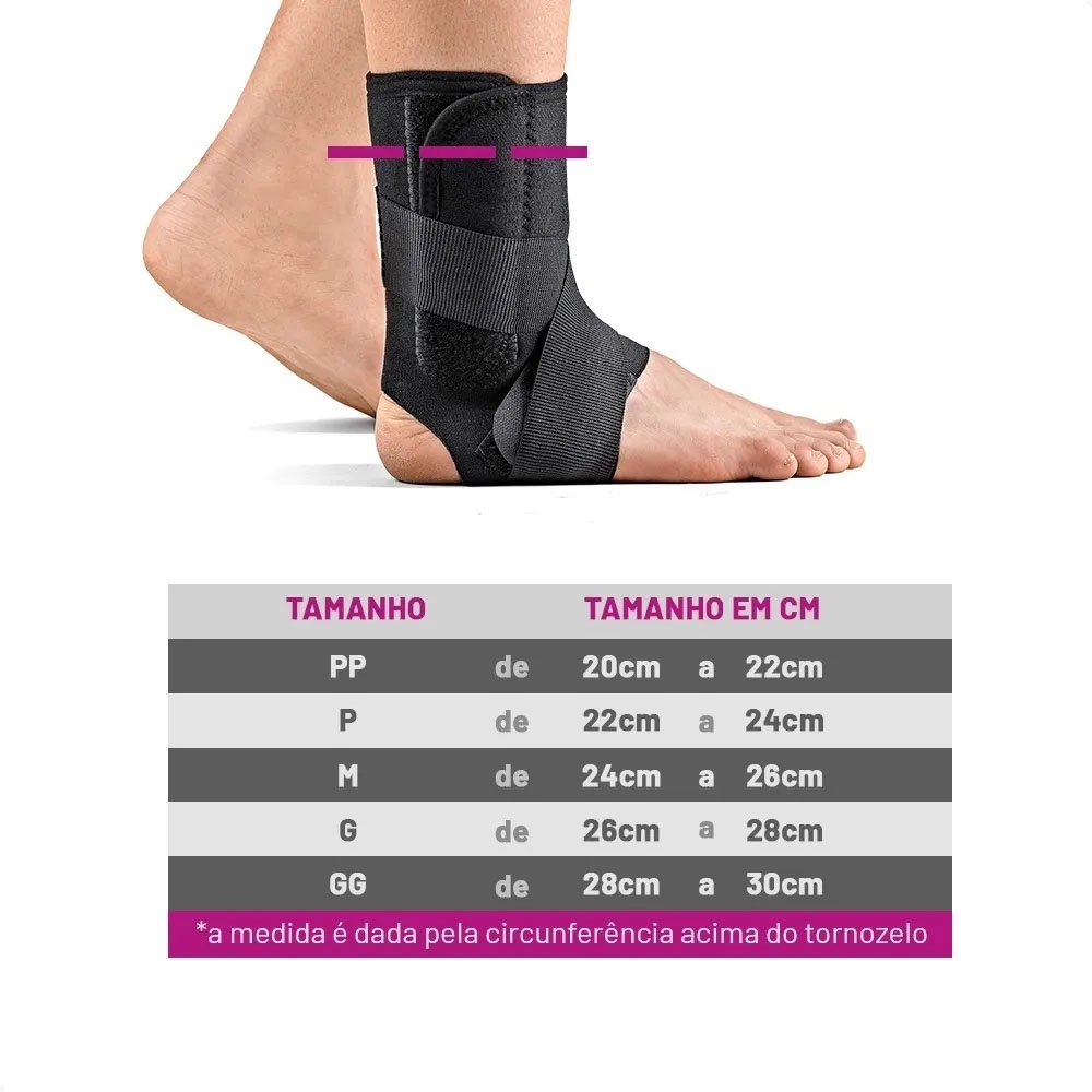 Descrição OR68 – Estabilizador de Tornozelo – Hidrolight. PRODUTO NOVO – LACRADO – ORIGINAL – POSTAGEM IMEDIATA! NÍVEL 3 – PREVENÇÃO E RECUPERAÇÃO DE LESÕES GRAVES. Produto Unissex, masculino ou feminino, para homens e mulheres. Consulte a tabela de medidas para escolher o tamanho correto! O Estabilizador de Tornozelo Hidrolight oferece compressão em torno do tornozelo, melhorando a sensação de estabilidade da articulação. Possui 2 (duas) talas laterais (uma de cada lado) que impedem a lateralidade dos movimentos do tornozelo. Possui 3 (três) faixas elásticas cruzadas que proporcionam compressão e estabilização adicional, que podem ser ajustadas conforme a necessidade. Retém o calor devido ao material em Neoprene, mantendo a região aquecida e auxiliando no alívio da dor. Tamanhos: PP 20 cm – 22 cm; P 22 cm – 24 cm; M 24 cm – 26 cm; G 26 cm – 28 cm; GG 28 cm – 30 cm. INDICAÇÕES: Tratamento de lesões no tornozelo; Reabilitação de fraturas; Prevenção de entorse e contusões; Auxílio no tratamento fisioterapêutico; Tendinites, bursites e artrites reumatoides. CONSULTE UM ESPECIALISTA. Especificações: Compressão na região do tornozelo; Melhora a sensação de estabilidade da articulação; Talas laterais proporcionam mais segurança aos seus movimentos; Possui faixas elásticas que ampliam seu efeito; Ajuste conforme a sua necessidade; Retém o calor devido ao material em Neoprene; Auxilia no alívio da dor. Composição: Borracha de cloropreno revestida com tecido 100% poliamida. Responsável Técnico: Stella Lima San Martins | CREFITO 188950. Autorização e Cadastro ANVISA: 8.07.582-1 | 80758210002.