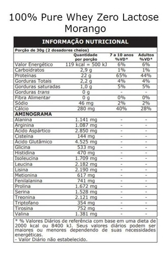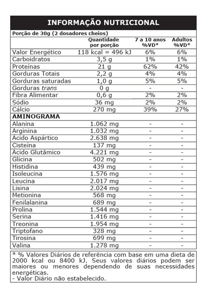 *Valores diários de referência com base em uma dieta de 2000 calorias ou 8400kj. Seus valores diários podem ser maiores ou menores dependendo de suas necessidades energéticas.